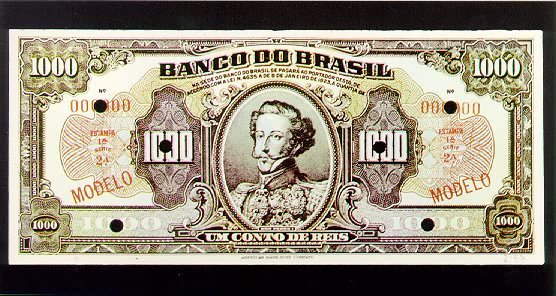 1 Conto de Réis Cédula do Banco do Brasil, que foi autorizado a emitir moeda de papel entre 1923 e 1926. As cédulas de um conto de réis eqüivaliam a um milhão de réis. |