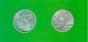 50 Centavos A fartura de matéria-prima em nosso solo e o fato de oferecer beleza duradoura, entre outras razões, fizeram com que o aço inoxidável viesse a ser usado em moedas brasileiras a partir de 1975. Entre os países que utilizavam o aço na cunhagem de moedas, o Brasil ocupa posição de destaque, por Ter desenvolvido processos de fabricação que lhe permitiram obter melhores resultados. |